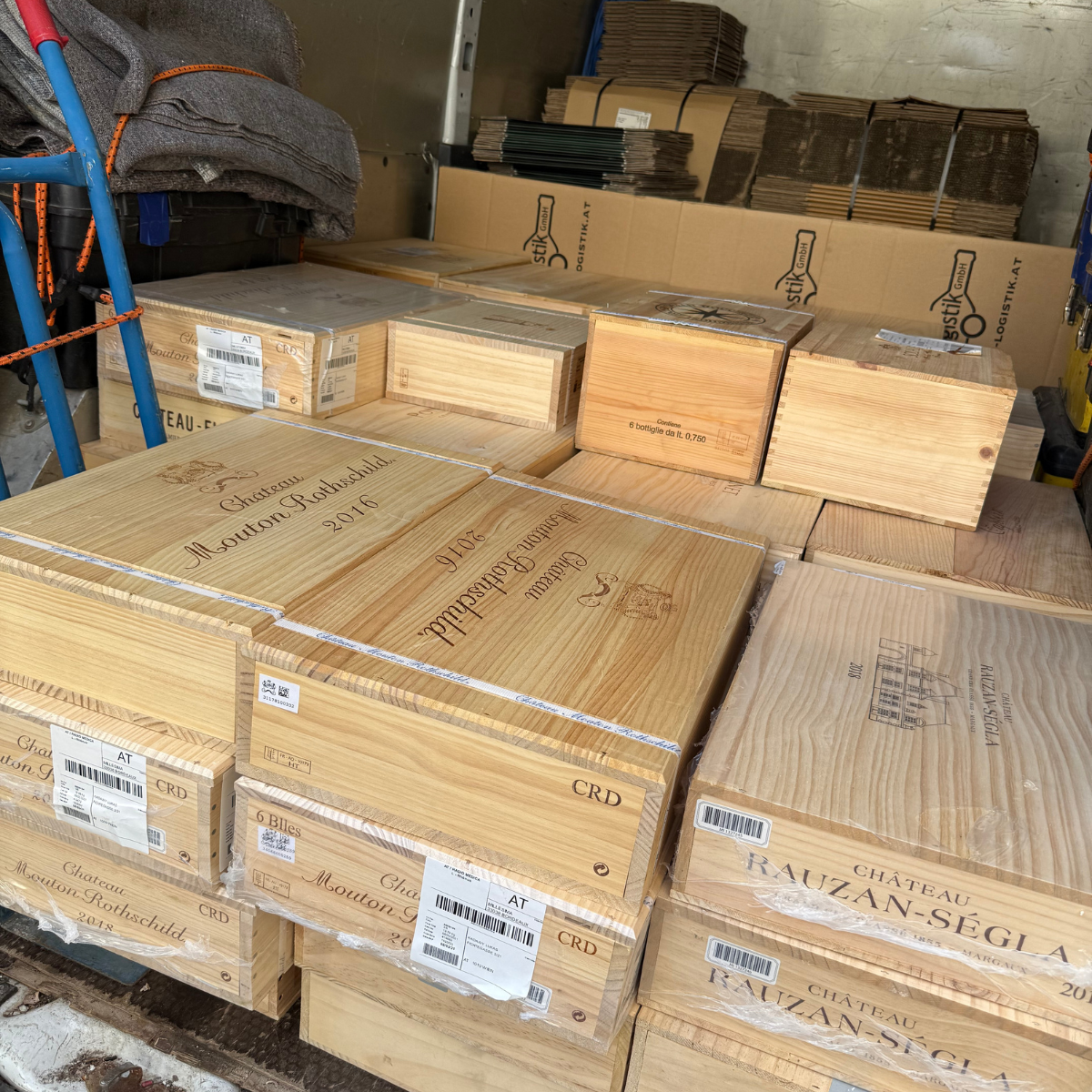 Jede Übersiedelung sieht anders aus. Bestand, Verpackung, Zugänglichkeit und die Situation vor Ort unterscheiden sich oft deutlich – deshalb wird der Ablauf bei Wine Wallet immer individuell geplant. Bei Günther bedeutete das: rund 5.000 Flaschen aus einem privaten Keller in der Wiener Innenstadt, überwiegend in Originalholzkisten und Kartonagen, sicher verpackt und mit möglichst wenig Aufwand für den Kunden, zu übersiedeln.